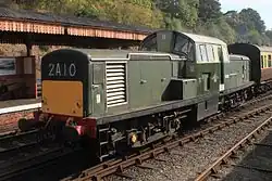 After withdrawal in 1971, D8568 went on to see industrial use at Hemelite, Hemel Hempstead and at Ribblesdale Cement, Clitheroe, and was then secured for preservation.[8] It is often based at the Chinnor and Princes Risborough Railway, but is currently at the Severn Valley Railway following an extensive overhaul.[9]