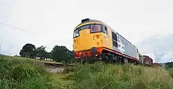 The British Rail Class 26 diesel locomotives, also known as the BRCW Type 2, were built by the Birmingham Railway Carriage and Wagon Company (BRCW) at Smethwick in 1958–59. Forty seven examples were built and the last were withdrawn from service in 1994. Like their higher-powered sisters, the BRCW Classes 27 and 33, they had all-steel bodies and cab ends with fibreglass cab roofs. They were numbered D5300-D5346.[1]
