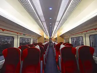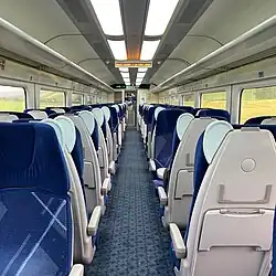 The interior of Standard Class aboard an LNER refurbished Mark 3 TS vehicle