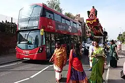 There were over 150 Hindu temples in the UK in 2012[38] with 30 Temples in the London area alone.[39] Slough Hindu Temple was built by the Slough Hindu Cultural Society - formally opened in 1981 - it was the first purpose-built Hindu Temple in the British Isles. However, the first Hindu Temple in the UK was opened in the late-1920s near Earls Court in London and it was functional for about four years.[40] In 2020, Historic England (HE) published A Survey of Hindu Buildings in England with the aim of providing information about buildings that Hindus use in England so that HE can work with communities to enhance and protect those buildings now and in the future. The scoping survey identified 187 Hindu temples in England.[41]