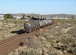 The railway line from De Aar to Upington and Namibia passes through the town.