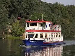 The Brno Reservoir, previously known as the Kníničky Reservoir (Czech: Brněnská přehrada, also known as Prýgl in Hantec slang) is a reservoir on the Svratka River at the northwest edge of the city of Brno, Czech Republic. The construction of a dam on the 56th kilometre of the Svratka River, and the resultant flooding of the river valley containing the village of Kníničky, created the reservoir. The reservoir used to serve as a water reserve for Brno (water from the Vír Reservoir and from wells in Březová nad Svitavou are used today). It remains a place for recreation, and also a source of electric power. The administrator of the Brno Reservoir is the state-owned enterprise Povodí Moravy, s.p.