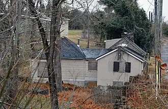The Broad Run Bridge and Tollhouse were built for the Leesburg Turnpike Company in Loudoun County, Virginia. The stone bridge, built about 1820, was a permanent replacement for a series of wood bridges at the location, with at least three that had been washed away between 1771 and 1803. The bridge spanned Broad Run on two arches with prominent conical buttresses. The road rose to the center of the bridge. The stone toll house stands nearby. It is a one-story three-bay house that has been progressively enlarged. The Tollhouse was purchased by the Loudoun County Board of Supervisors with intentions to restore the facility.[3]
