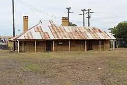 Located in the centre of the western portion of the site is the Former District Engineers office, also referred to as the District Manager's building and the Divisional Locomotive Engineers office. This building is an interesting single storey drop-concrete-slab building with corrugated metal hipped roof which extends to form a timber-framed deep veranda on three sides with concrete floors. The rear of the building has a double hipped roof with a north–south valley gutter. On one verandah is a lower window, apparently used for the collection of wages by staff.[3]