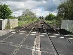 The Leeds Northern Railway line between Northallerton and Eaglescliffe was opened in 1852;[1] the station opened in 1854.[2] It was equipped with three sidings to the south of the level crossing a weighbridge, a coal drop, and a private siding.[3] The principal freight from the station was hay and clover.[4] The level crossing is still in operation,[1][5] though the station buildings were demolished in the early 2000s.[6]