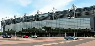 In May 1998, the club bought Brøndby Stadion from the Brøndby municipality for 23.5 million DKK[49] and immediately spent double that amount to modernize the stadium. When the club qualified for the 1998–99 UEFA Champions League, the stadium was still under construction and the matches were moved to archrival F.C. Copenhagen's Parken Stadium. In 2000, all stands were standardized and built to the same height, allowing for crowds of 29,000 at domestic matches and 22,000 in the European matches, which allow only all-seated crowds. Since then, the stadium has seen a number of lesser or larger infrastructural and technical enhancements, and the February 2004 European match against Barcelona was played in front of a 26,031-spectator crowd.