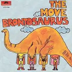 "Brontosaurus" is a song by rock group the Move, written, sung and produced by Move guitarist Roy Wood. The song was released as the lead single to the band's third studio album, Looking On, on the 6th of March, 1970, with the B-side "Lightning Never Strikes Twice". The song would later become the sixth track on the album when it released on the 11th of December that year. It reached number 7 in the UK Singles Chart during April 1970,[4] and number 36 in Canada.[5] The song would later be covered by the power pop act Cheap Trick.