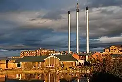 Today, the Brooks-Scanlon sawmill site has been redeveloped into the Old Mill District, a commercial and retail area on the banks of the Deschutes River in Bend. Brooks-Scanlon's Mill A building is now an office complex. The Mill A powerhouse and burner foundations are now a public patio, filled with flowers in the summer. In addition, the Mill B powerhouse is the home of an outdoor sports retail business.[52]