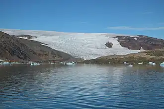 Together the Bruckner and Heim glaciers discharge icebergs into the inner part of the fjord.[4]