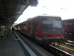 The Bruhrain Railway (German: Bruhrainbahn) is a railway line running from Bruchsal to Germersheim in the German states of Baden-Württemberg and Rhineland-Palatinate. Whilst it was part of a national trunk line (Magistrale) and handled long-distance traffic; today the line is exclusively worked by local trains.