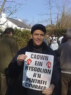 Fôn is also politically active in support of the Welsh language, and is a supporter of Welsh independence.[5]