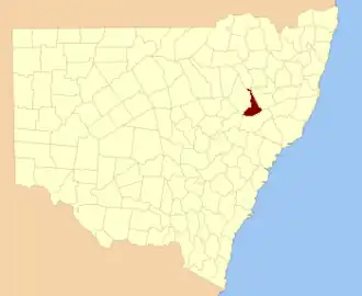 1. ^ "Buckland County". Geographical Names Register (GNR) of NSW. Geographical Names Board of New South Wales.