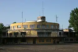 Planning for the airport started in 1935, and in 1936, design competitions for the terminal and main hangar were held. Construction started the same year, and the terminal was completed in 232 days, being opened on 20 June 1937. The main architect of the terminal was Virgil Bierbauer (Hungarian: Virgil Borbiró),[2] and it is considered one of his finest works. Its grand main hall was particularly noteworthy.[3] The building still exists, but is not accessible to the public.