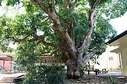 The early and continuing commitment to play-based education, particularly in primary school, resulted in the provision of outdoor play space and sports facilities, such as ovals and tennis courts. Also, trees and gardens were planted to shade and beautify schools and schools celebrated Arbor Day from 1890. Aesthetically-designed gardens were encouraged by regional inspectors, and educators believed gardening and Arbor Days instilled in young minds the value of hard work and activity, improved classroom discipline, developed aesthetic tastes, and inspired people to stay on the land.[45] Arbor Day had been an important event at Buderim Mountain State School. Many of the mature trees within the grounds were planted as Arbor Day trees, including numerous camphor laurels (Cinnamomum camphora).[46] On Arbor Day, 1945, 100 Pinus taeda trees, commonly known as loblolly pines, were planted in the school's forestry plot.[47] Forestry plots were the product of after-school agricultural clubs, introduced in 1923 at primary schools, under the "home project" scheme. Curriculum driven, these clubs had a secondary commercial value as well as disseminating information and helping to develop a range of skills. The Department of Primary Industries provided suitable plants and offered horticultural advice.[48][49] School forestry plots were seen by the government as a way of educating the next generation about the economic and environmental importance of trees, as well as providing testing grounds for new species. Located throughout the state, Arboretum plots were a means of experimenting with a variety of tree species in different soil and climatic conditions. Encouraged by the Education and Forestry Departments, by 1953 about 380 Queensland schools were undertaking forestry projects.[50][51][52][53][54][55][56][1]