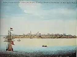 More attacks by the indigenous people forced the settlers away, and in 1542, the site was thusly abandoned.[30][31] A second (and permanent) settlement was established on 11 June 1580 by Juan de Garay, who arrived by sailing down the Paraná River from Asunción (now the capital of Paraguay). He dubbed the settlement "Santísima Trinidad" and its port became "Puerto de Santa María de los Buenos Aires."[27]