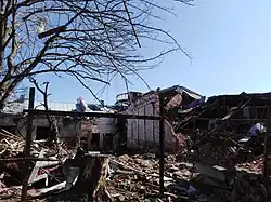 На цей раз ракета влучила поблизу обласного молодіжного центру (колишній кінотеатр ім. Щорса). Будівлю кінотеатру, зведену у 1939 року, пам'ятку архітектури, зруйновано. [This time the rocket hit near the regional youth center (former Shchors cinema). The building of the cinema, erected in 1939, an architectural monument, was destroyed.]