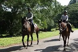 Bukit Brown Cemetery is known for its wildlife, making it a popular location with photographers, nature lovers, and bird-watchers.[100] The cemetery also serves as a green space for joggers, cyclists, and horse-riders, who are from the nearby Singapore Polo Club.[101] In 2012, NSS recorded 90 resident and migrant birds, along with 48 species of other animals living at the cemetery.[102] Mammals and birds seen at Bukit Brown Cemetery include the white-bellied woodpecker, the changeable hawk-eagle, the Sunda flying lemur, and the large flying fox.[103][104]