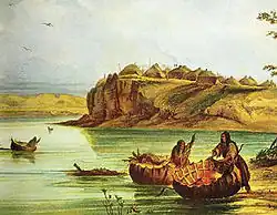When the traders of Hudson's Bay Company first visited the Nueta in 1790 they found that tribe possessed tublike boats with a framework of willow poles, covered with raw buffalo hides. Later, frontiersmen who ascended the Missouri River noted this light, convenient craft. From 1810 to 1830, American fur traders on the tributaries of the Missouri regularly built boats eighteen to thirty feet long, using the methods of construction employed by the Native Americans in making their circular boats. These elongated bull boats were capable of transporting two tons of fur down the shallow waters of the Platte River.[1] These larger boats required joining the buffalo hides with waterproof seams, a technique not used by the American Indians.