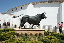 The bullfight is regarded as a demonstration of style, technique, and courage by its participants[47] and as a demonstration of cruelty and cowardice by its critics. While there is usually no doubt about the outcome, the bull is not viewed by bullfighting supporters as a sacrificial victim — it is instead seen by the audience as a worthy adversary, deserving of respect in its own right.[48]
