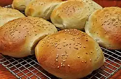 In England and Scotland, a bun is considered a type of sweet cake, understood as very rich, spiced and studded with fruit in Scotland, seen in the example of the currant bun.[1] In the US, a roll is understood as a bread roll, particularly one that holds a burger, and is cut horizontally.[2] Chinese baozi, with savory or sweet fillings, are often referred to as "buns" in English.