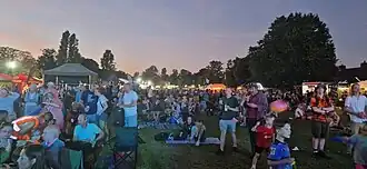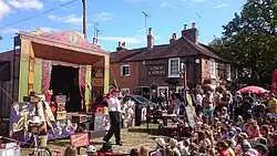 The growth in numbers of attendees by 2024 led to changes to accommodate the numbers, with the festival expanding to use the Bull Croft field in addition to the Kinecroft. As the Bullcroft is located on the opposite side of the High Street to the Kinecroft, this necessitated the closure of that road to provide a safe pedestrian route between the two. In previous years the town's Market Place was closed to traffic, but as the High Street is the only alternative route through the town, Market Place remained open in 2024, with many of the stalls and spaces from there moved to the two fields.[7]