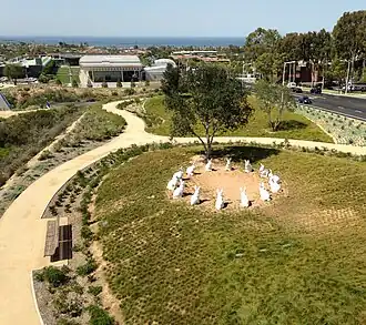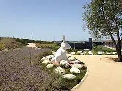 Bunnyhenge is a public sculpture in Newport Beach, California, United States, depicting fourteen large white rabbits (of the desert cottontail species) sitting on their haunches in a circle. Two larger, 8 ft (2.4 m) rabbits outside the circle are also a part of the sculpture. Made of concrete and placed in the city's civic center, the sculpture garnered controversy when first built due to its improper allocation of city finances, costing $221,000. They were initially made for children to play with.[1][2][3][4]