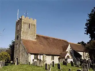 About a mile north-west of Buriton was the extensive manor of West Mapledurham, formerly the property of the Bilson and Legge families, and later the Gibbons and Bonham-Carters. Edward Gibbon, author of the classic Decline and Fall of the Roman Empire, among other works, lived at Buriton Manor for much of the second half of the eighteenth century.[1] John Goodyer, the seventeenth-century botanist, was buried at St Mary's and is commemorated with a stained glass window there.