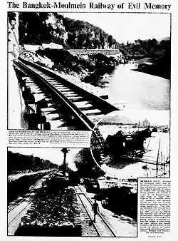68. ^ "Aerial photograph of Kanchanaburi, Thailand during a raid by Allied aircraft including". Austrial War Memorial. Retrieved 1 February 2022.