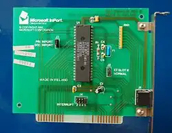 A Microsoft InPort bus mouse adapter, in the form of an 8-bit ISA (XT-bus) card
