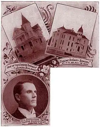 The school was founded as a divinity school in 1895 by Christian Church preacher and educator Eugene Claremont Sanderson as the Eugene Divinity School (EDS). Sanderson envisioned a school at which students would study the Bible and principles of Christian ministry under Eugene Divinity School's faculty, but take other subjects on the neighboring campus, a model he also attempted to set up at Manhattan Christian College, located near Kansas State University. The Eugene Divinity School and its successive institutions maintained this arrangement with the University of Oregon until 1995, when it was discontinued.
