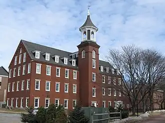 The Busiel-Seeburg Mill is a historic mill building in Laconia, New Hampshire, since converted into an office building known as 1 Mill Plaza. This 3+12-story brick structure achieved its present configuration in stages, beginning in 1853, and successively altered and expanded through the rest of the 19th century. The business, established by John W. Busiel in 1846, manufactured knitted hosiery, and was one of the first producers of knitwear to use circular knitting machines invented by Aiken and Peppers.[2] The building was listed on the National Register of Historic Places in 1971.[1]