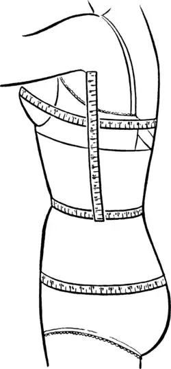 Bust/waist/hip measurements (informally called 'body measurements' or ′vital statistics′) are a common method of specifying clothing sizes. They match the three inflection points of the female body shape. In human body measurement, these three sizes are the circumferences of the bust, waist and hips; usually rendered as xx–yy–zz in inches, or centimeters. The three sizes are used mostly in fashion, and almost exclusively in reference to women,[1] who, compared to men, are more likely to have a narrow waist relative to their hips.