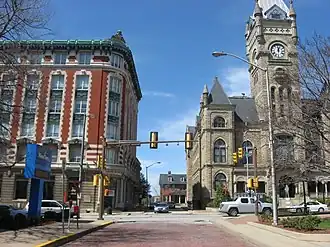 The contributing site is the Diamond, which contains contributing objects, including the Soldiers and Sailors Monument, which was erected in 1894. Located in the district and listed separately are the Butler County National Bank, the Sen. Walter Lowrie House, and the Butler County Courthouse.[2]