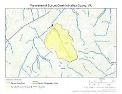 Butrum Creek rises about 1 mile west of Cedar Grove, Virginia, and then flows northeast and to join Lawsons Creek about 3 miles northeast of Alton.[1]