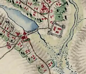 ![]() Butsniv Castle on the map by Friedrich von Mieg, 18th century | |