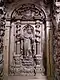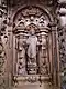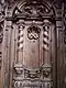 The entablature, decorated with ornaments and figures, is placed on the dorsal walls and the lower high cheeks. Its weight is mainly supported by tie rods fixed in the wall of the priest's choir. The lower part of the entablature consists of three steps.[35] Above this is a frieze zone, followed by a cornice. Three ornamental forms alternate in the frieze: a drapery type with a cloth gathered on two sides by a knot, a cartouche type with acanthus leaves and a variation of an acanthus vine ornament. Under the entablature, garlands of fruit, flowers and tendrils are stretched between the high cheeks.