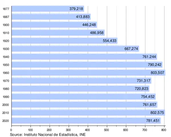 The province is mainly divided into three geographical areas: the Sierra Morena to the north, the Baetic Depression in the center and La Campiña in the south.[3] The climate is continental Mediterranean with temperatures in the capital ranging from 9.2 °C in January and 27.2 °C in July and August, which often exceed 40 °C. Rainfall in the capital is recorded from 600 to 750 mm per year. It is concentrated from October to April. The Province of Córdoba ranks 11th in Spain in which the entire population is concentrated in the capital. On average, 31.96% of a Spanish province's population inhabits its capital. The province consists of 75 municipalities. They are further grouped into 8 "comarcas".[3]