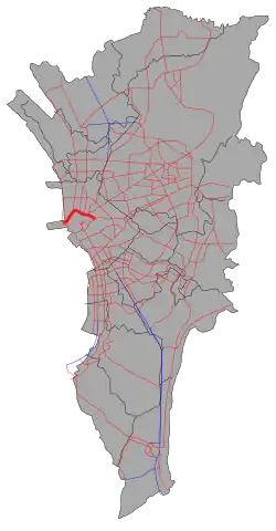 ![]() The route of Recto Avenue in Metro Manila. Recto Avenue is highlighted in red. | |