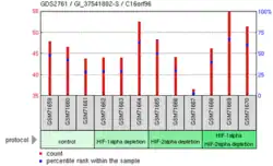 C16orf96 expression is generally low in cells. in situ hybridization experiments suggest that C16orf96 RNA is only expressed in the testis while the EST profile for C16orf96 shows gene expression is low in testis and skin only.[13][14] Expression of the C16orf96 gene is modulated by the depletion of both hypoxia induced factor 1/2α (HIF1/2α). When only one of the factors is depleted expression does not change suggesting that there is redundancy with these two HIF.[15]