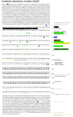 In humans, Chromosome 6 open reading frame 47, C6ORF47, is a single exon gene that spans 2481 nucleotides that encodes for a 294 amino acid protein.[5][6]