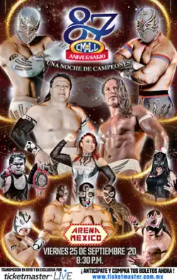The CMLL 87th Anniversary Show (Spanish: 87. Aniversario de CMLL) was a professional wrestling pay-per-view event, scripted and produced by the Mexican lucha libre wrestling company Consejo Mundial de Lucha Libre (CMLL; Spanish for "World Wrestling Council") that took place on September 25, 2020, in CMLL's home arena Arena México, Mexico City, Mexico.[1] The event was also billed as "Night of Champions", where the fans decided the opponents of the defending champions at the event.[1] No fans were in attendance at Arena México due to limitations from the COVID-19 pandemic, but the show was broadcast as an internet pay-per-view on Ticketmaster Live.