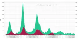 ![]() Natural excess deaths (green) up to 2022-12-10 vs confirmed COVID-19 deaths (red) up to 2022-07-02. | |