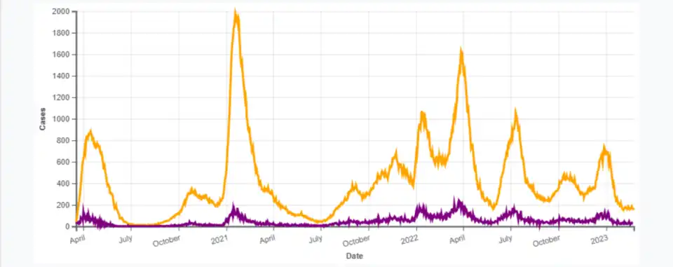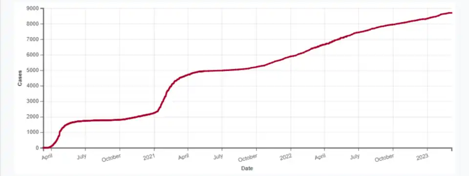 By 13 November 2023, the Department of Health had confirmed 1,725,026 cases and 9,366 deaths;[3] a rate of 342,416 cases per million (34.2% of the population), 1,866 deaths per million (0.19% of the population) and 2,606,161 tests per million population.[53]