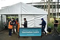 On 10 May 2021, a mass vaccination hub opened at Sydney Olympic Park. The same day, registrations began for NSW residents aged 40 to 49 to receive the Pfizer vaccine.[39] On 9 August, the Sydney SuperDome at Sydney Olympic Park was opened as a Pfizer vaccination hub for Higher School Certificate (HSC) students. The hub was fully booked with almost 3,000 appointments on its first day.[40] The Sydney SuperDome vaccination hub closed on 7 November 2021, after delivering more than 360,000 doses.[41]