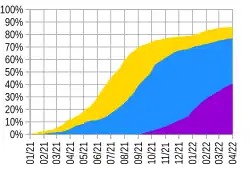 The milestone of 60% population coverage of partial vaccination (at least 1 of 2 doses) was reached on 24 August 2021. On 23 September, 250.3 thousand boosters had already been administered.[81] On March 30, 2022, 75% of the population was fully vaccinated.