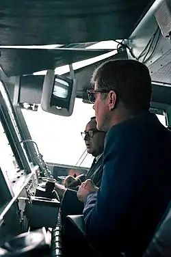 In May 1979, the ship teamed up with Carrier Air Wing 15 (CVW-15)[14] for another Western Pacific deployment. Her duties included search and assistance operations to aid refugees in small boats fleeing the Socialist Republic of Vietnam.