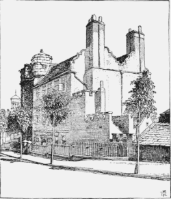 The first structure was built during the fourteenth century,[1] between c. 1335 and 1347, by Sir Hugh de Cokesay. Caldwall Castle was owned by the Cokesay family until it was passed to the Wyntour family in 1498.[3] Under the Wyntours, the manor house was rebuilt sometime during the early fifteenth or sixteenth century and the present structure, known as Caldwall Tower, also dates to this time. The Wyntour family eventually sold Caldwall Castle in 1589 to the de Clare family.[2] Around 1690, a three-storey brick-built structure was built to connect the surviving tower to the north-west side, and the entire building was renovated during the seventeenth century.[2]