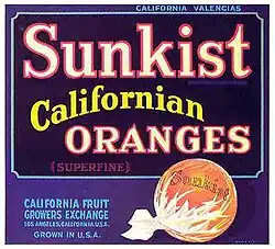 - ^ "Pushing Sunkist Oranges: California Fruit Growers Exchange Adopts Plans that Enhance Consumption and Brings Good Advertising — Chicago March 11". Fruit Trade Journal and Produce Record. 40 (23). New York: 6. March 13, 1909. Retrieved April 30, 2025.