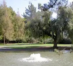 Early development of the modern campus came to a close in 1976 when the Student Union was constructed between the main quad and the lakes. This building continued the use of the physical master plan, using primarily redwood and preceded the similarly built Carson Hall, an art building, a childcare center, additional parking, and a computer center which was added onto the library.[10]