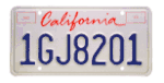 | 1982 | blue on reflective white with graphic Art Deco state name | The Golden State | 2ABC123 | 2AAA000 to 2GPZ999 | Extra-cost optional plate until 1987, when it briefly became the standard passenger base after the 1969 blue base was discontinued. Awarded "Plate of the Year" for best new license plate of 1983 by the Automobile License Plate Collectors Association, the first and, to date, only time California has been so honored. This plate design was seen in the opening credits of the television drama L.A. Law, which aired on NBC from 1986-94. The validation sticker corresponded to the year of each episode's air date. |